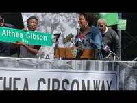 "New York Rens Court - Street Co-naming" The southeast corner of 138th street and A. Clayton Powell boulevard was co-named "New York Rens Court" - in honor of the New York Renaissance Big Five - on Saturday May 21st, 2022