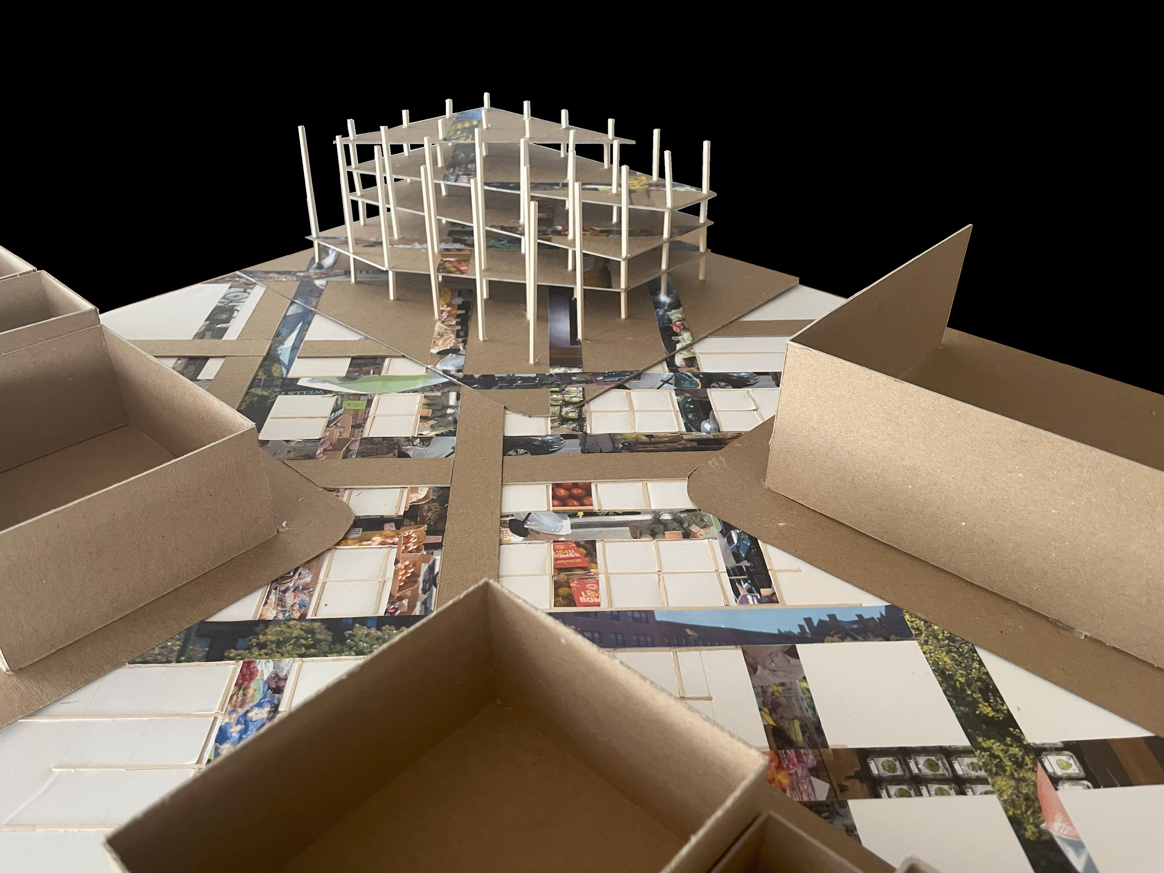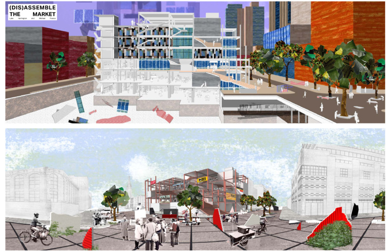 (dis)assemble the market proposes the partial dismantling of the existing commercial retail building, re-configuring the floor plates and scattering reassembled fragments throughout the intersection of 125th Street and Lenox Avenue to define a new pedestrian plaza. Through the exploitation of the existing infrastructure the project seeks to present an ideological alternative to the generic commercial development of the corridor.
